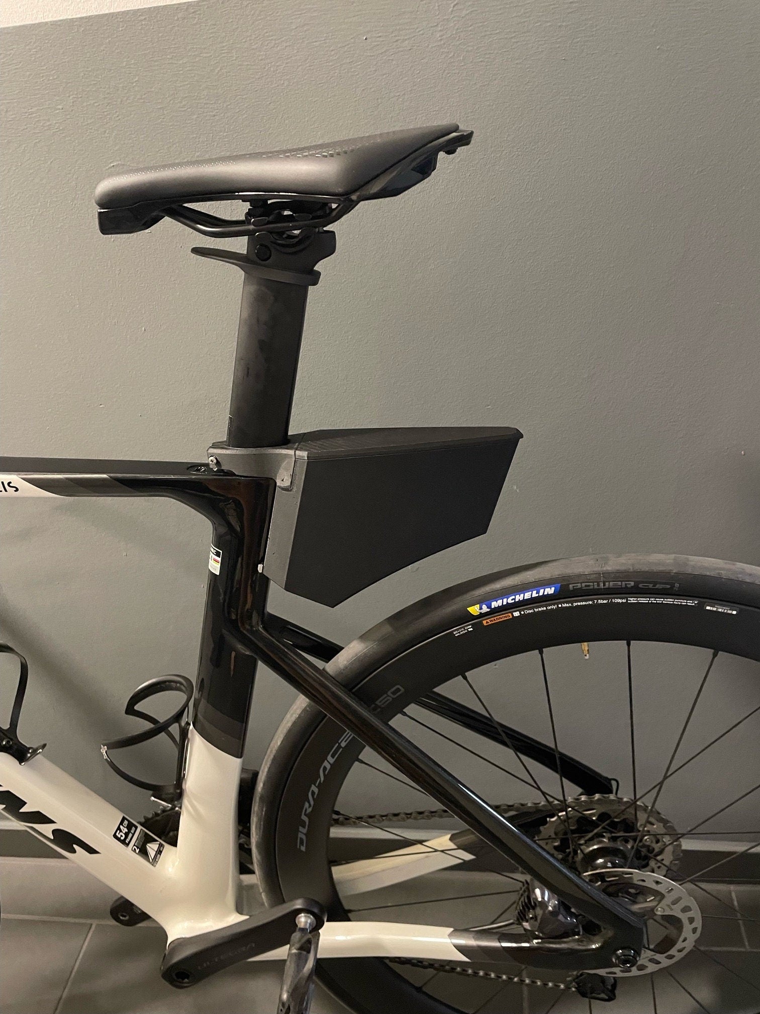 Met de Stevens Arcalis Toolbox ga je elke wedstrijd voorbereid van start. De box is gemakkelijk te bevestigen aan het zadel en is specifiek gemaakt voor de Stevens Arcalis. Hierdoor blijft de fiets aerodynamisch.